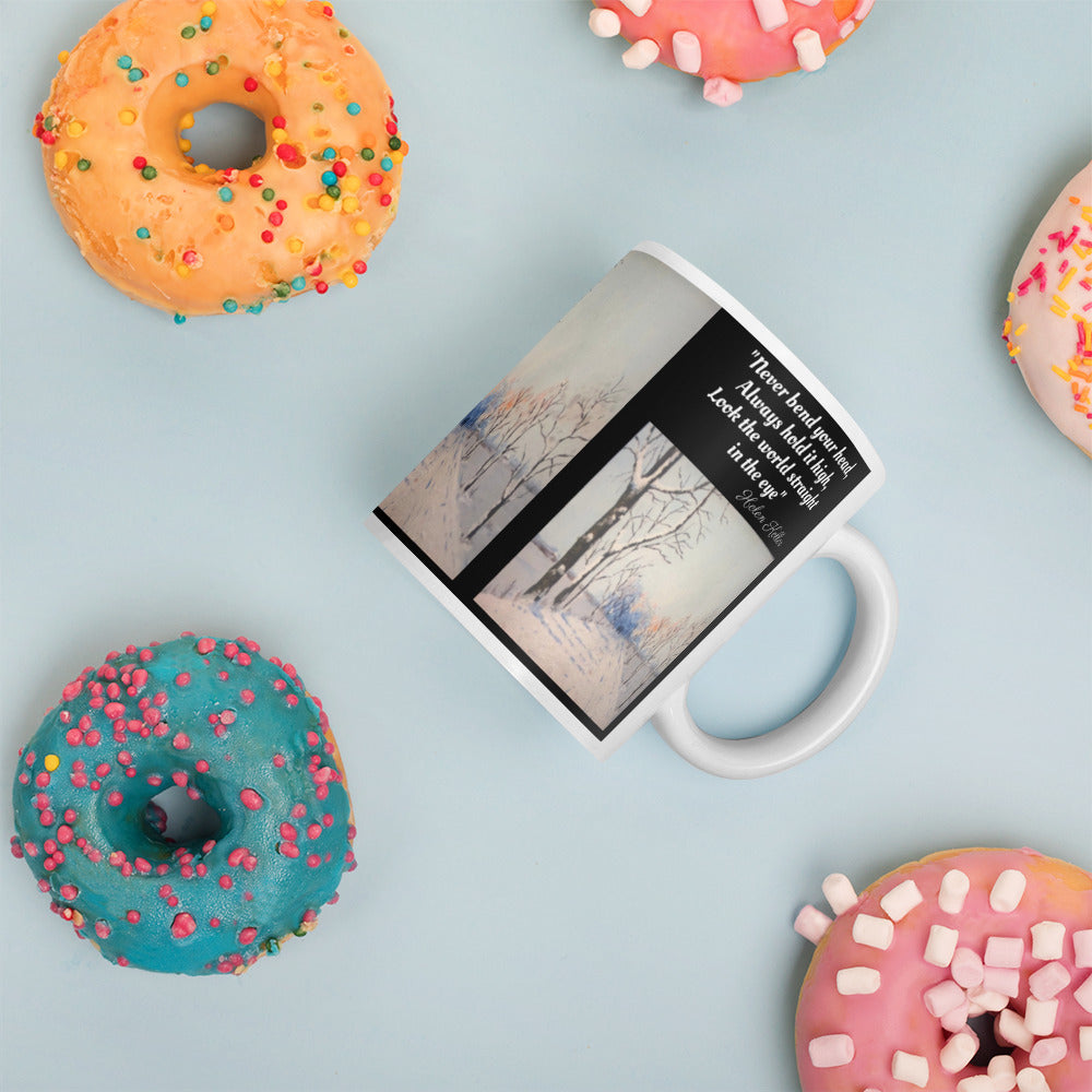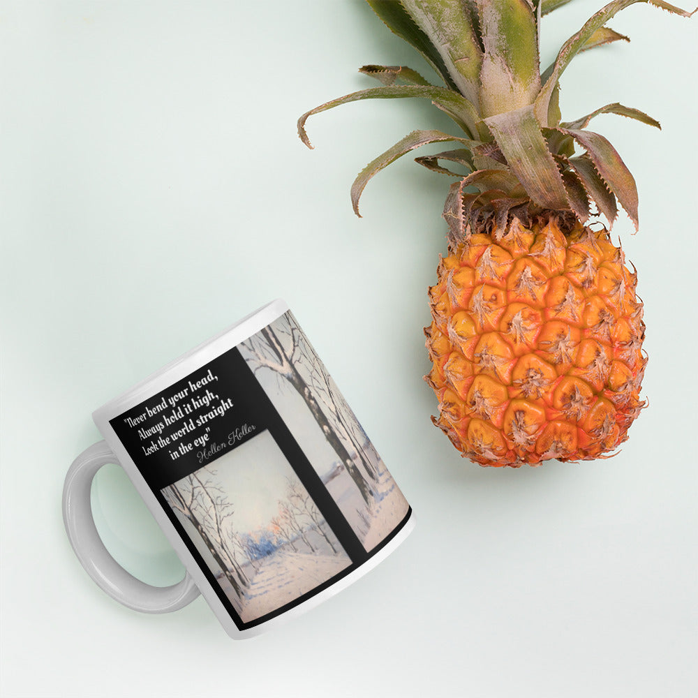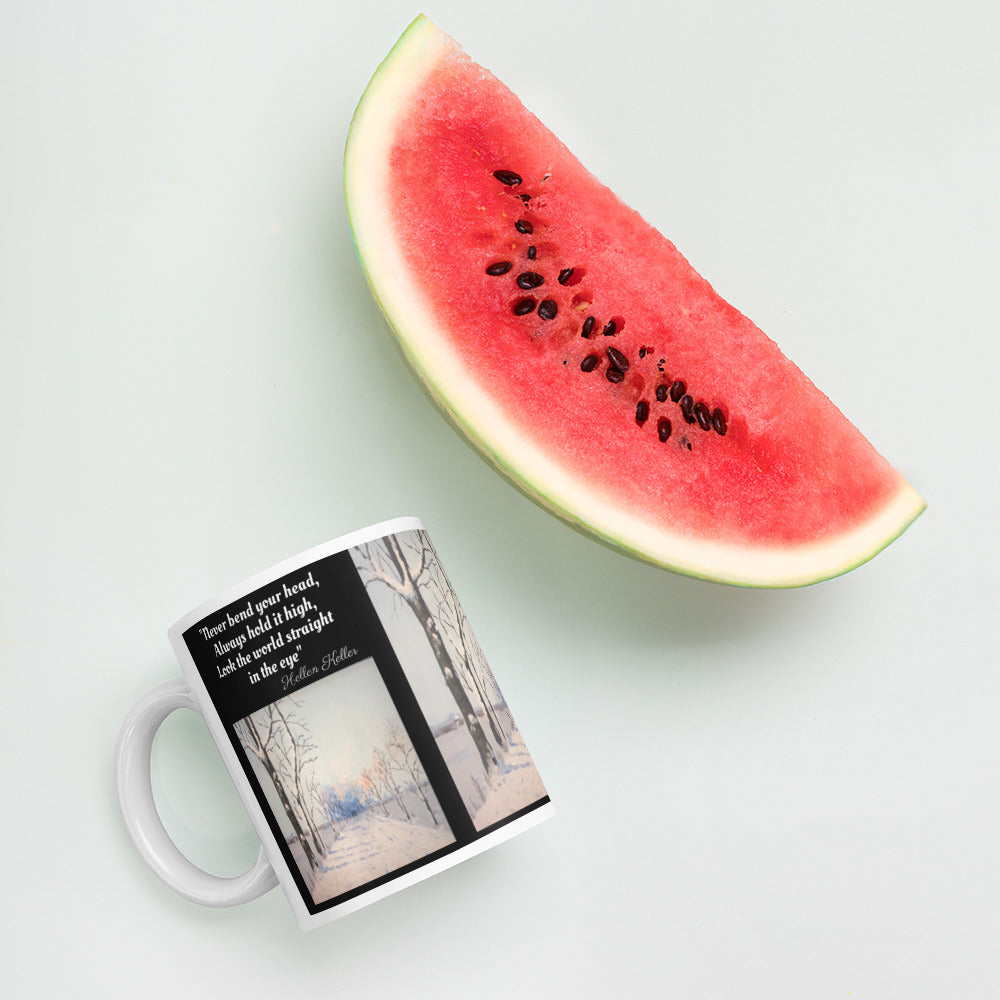 Hoodies4You "1st Winter Snow" Mug "Never bend your head, Always hold it high, Look the world straight in the eye" Quote by Helen Keller