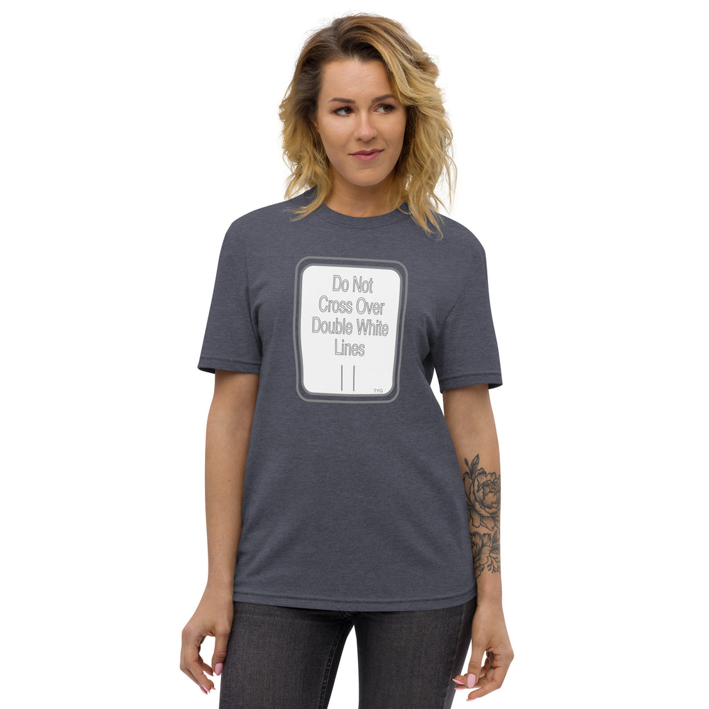 Hoodies4You "Do Not Cross Over Double White Lines" Unisex recycled t-shirt