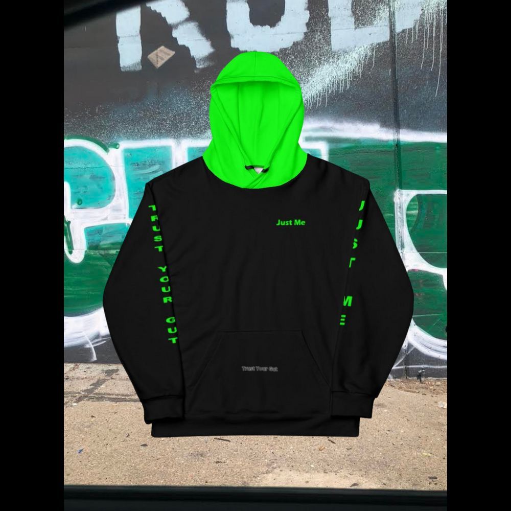 Hoodies4You "Just Me" "Trust Your Gut" All Black w/Green Letters