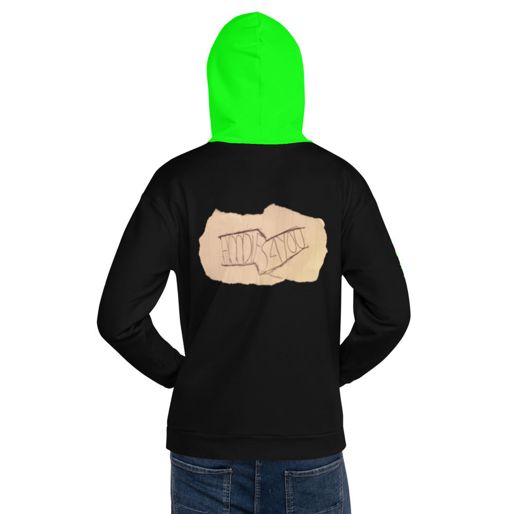 Hoodies4You "Just Me", "Trust Your Gut" Black w/Neon Green Hood w/ Back Tag