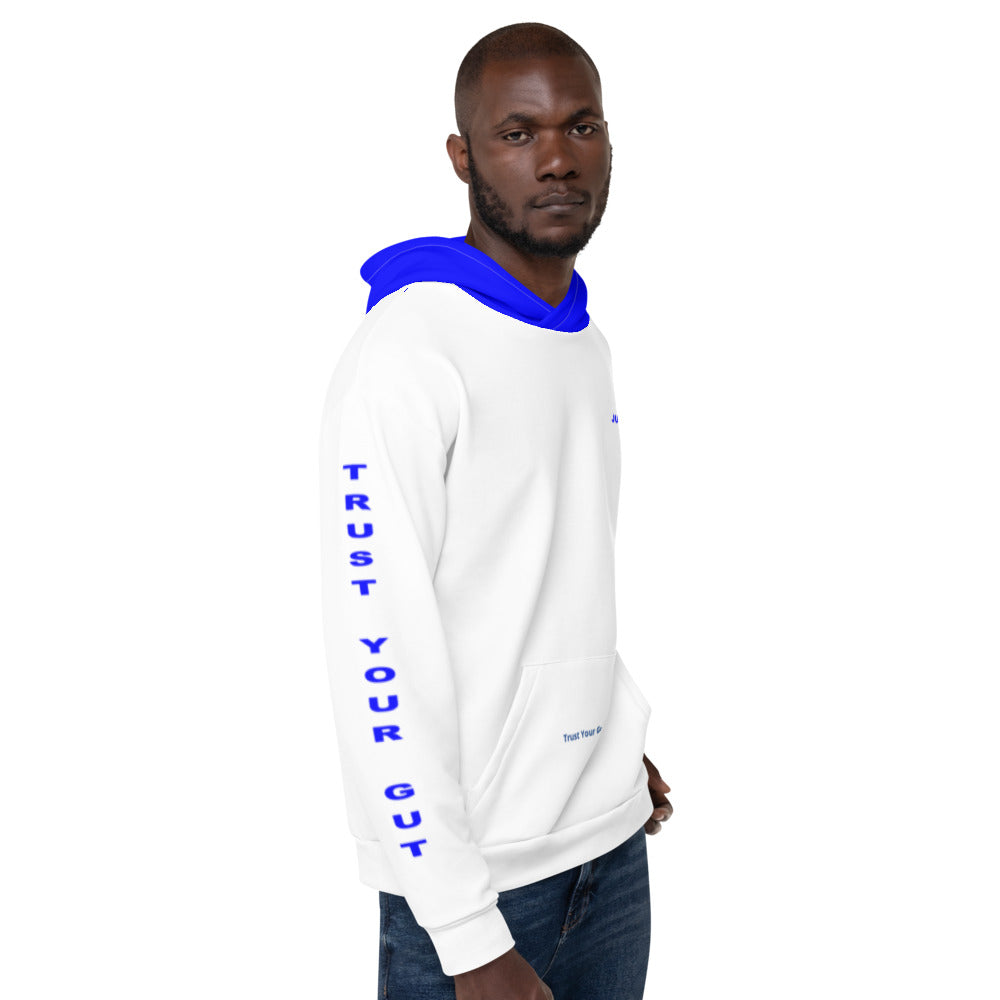 Hoodies4You "Just Me" "Trust Your Gut" White w/Blue Letter and Hood