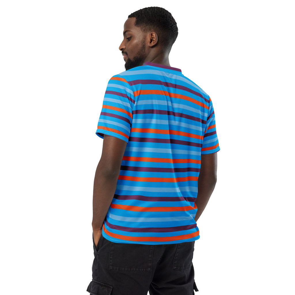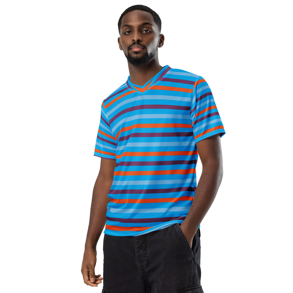 Looking for the perfect sports jersey? We have you covered—made of 100% recycled polyester fabric, this shirt is breathable, moisture-wicking, and has a double-layered v-neck collar that creates a premium look.