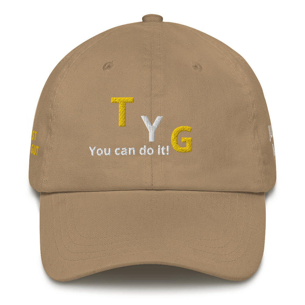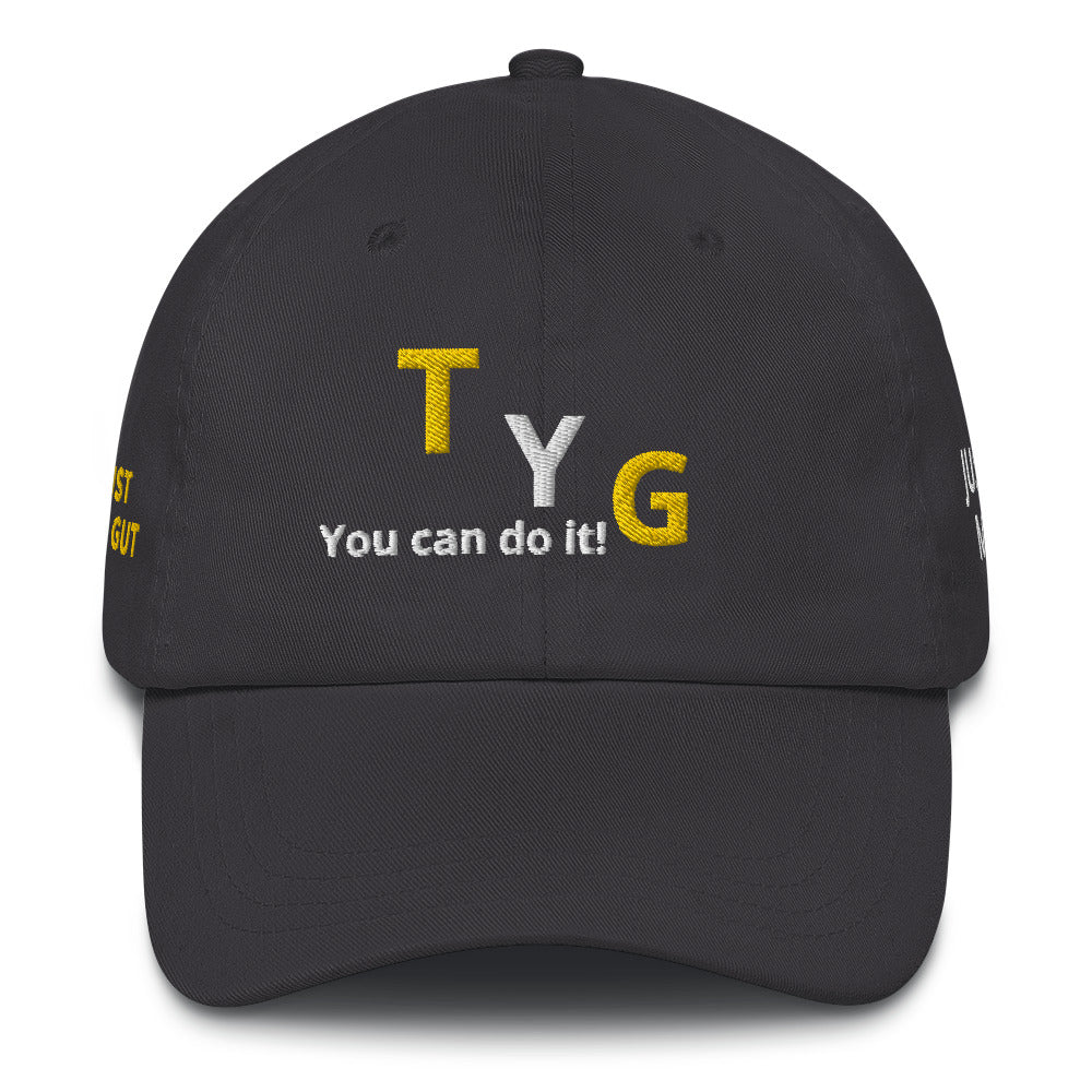Hoodies4You "TYG" "You can do it!" Black hat w/gold and white letters
