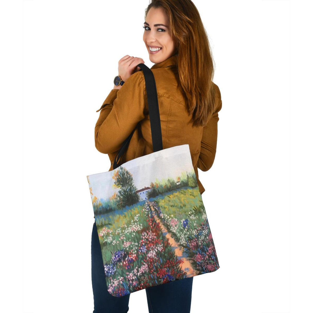 - Tote bag made from our premium 50/50 Poly-Cotton blend for soft comfort and maximum durability. Each tote features a double-sided print and is finished with a set of straps for over-the-shoulder carrying.