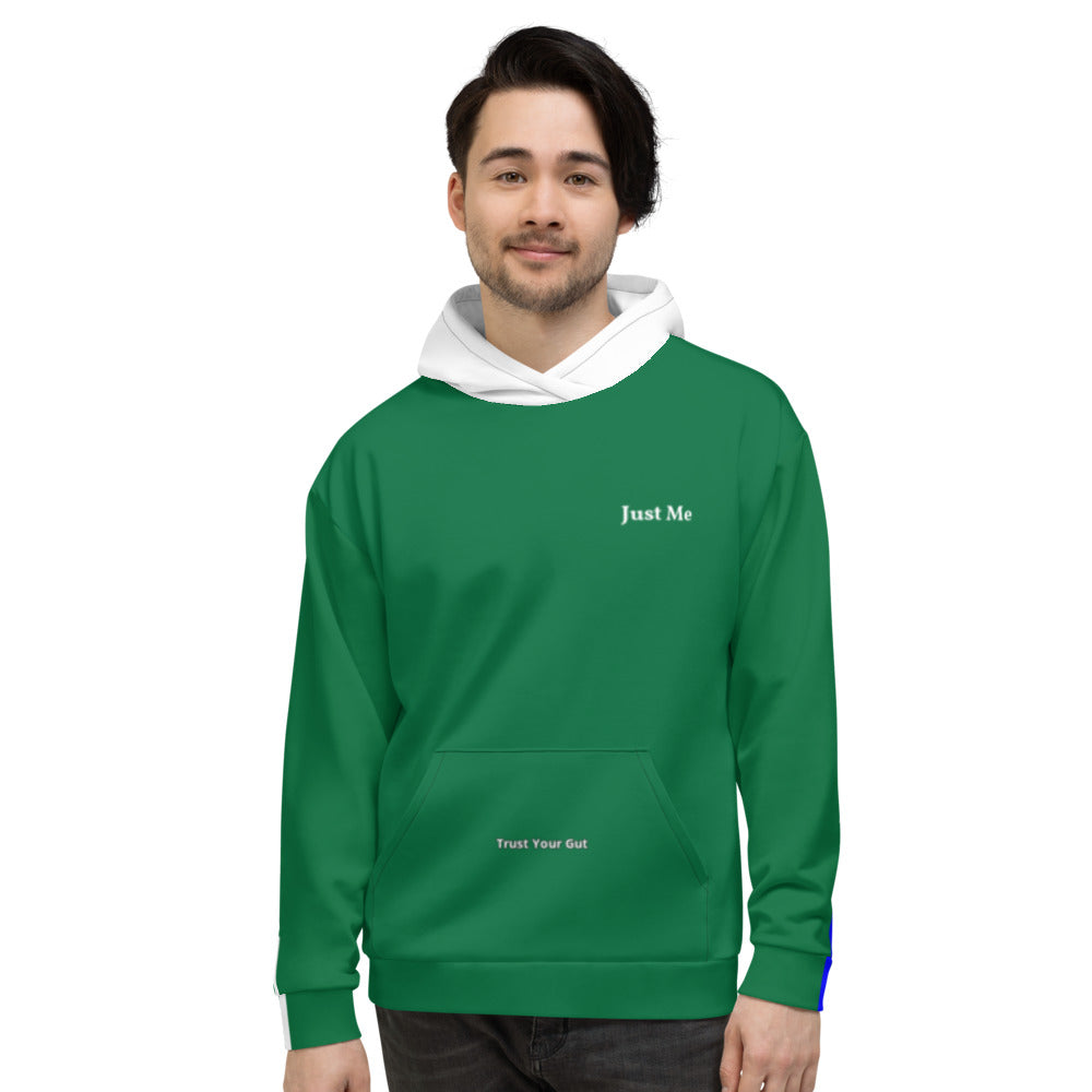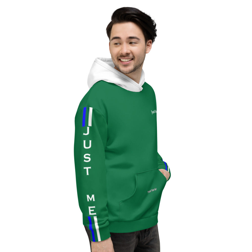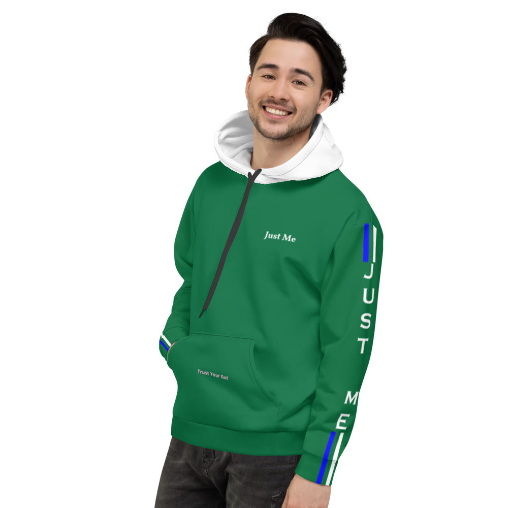 Hoodies4you "Just Me" "Trust Your Gut" Dual Stripes Forest Green w/White Hood w/back tag