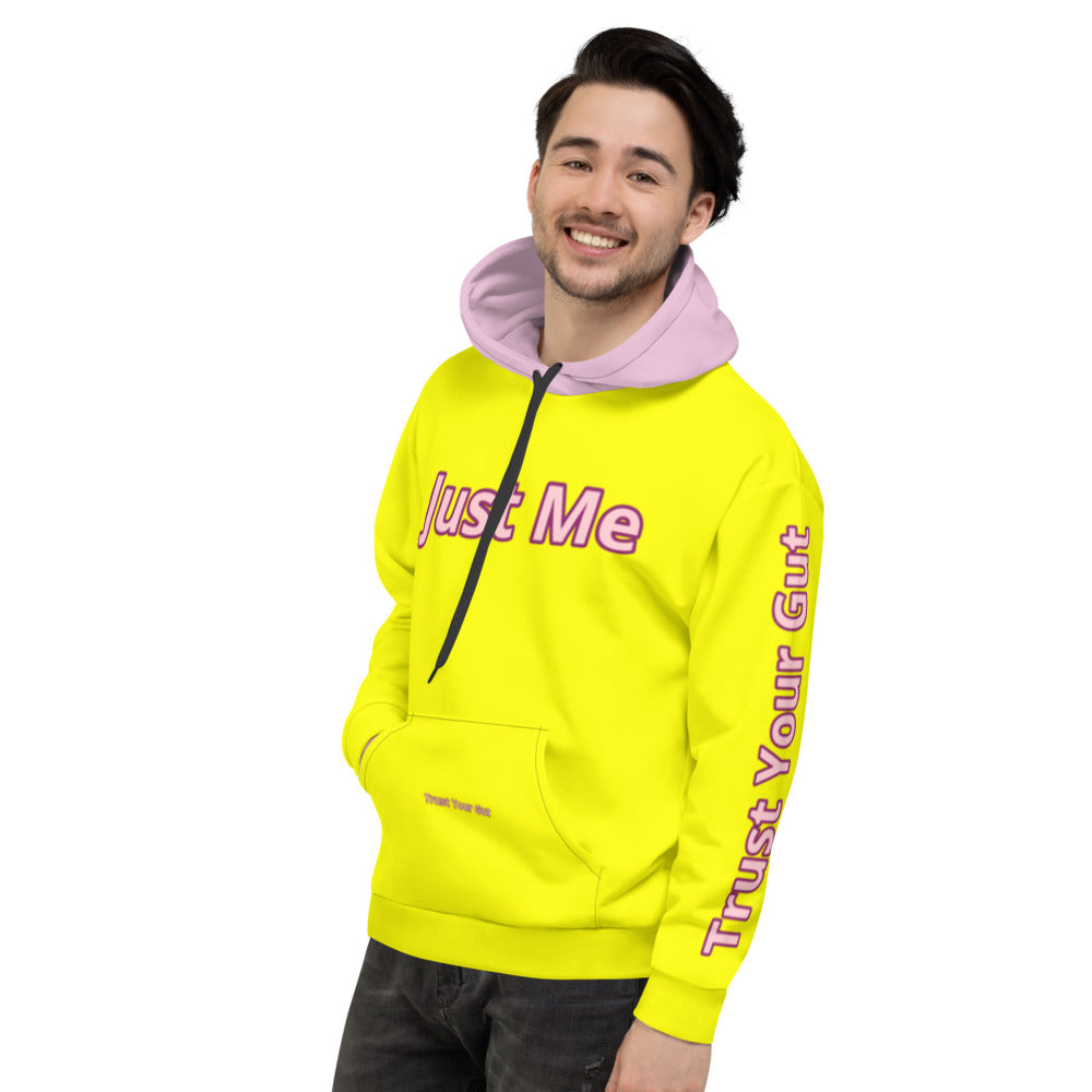Hoodies4you "Just Me" "Trust Your Gut" Yellow w/Bubble Gum Pink Hood